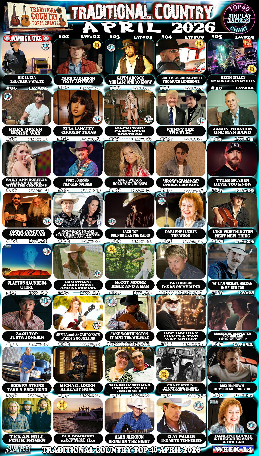 AirplayExpress Top40 Traditional Country Chart Week 14, April 2026