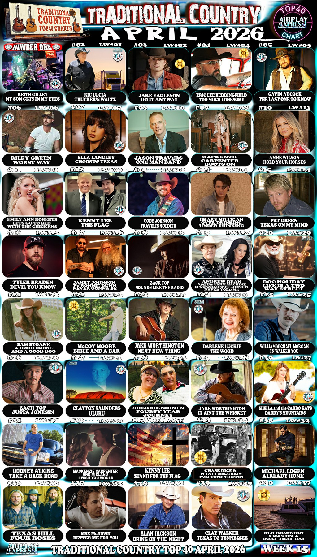 AirplayExpress Top40 Traditional Country Chart Week 15, April 2026