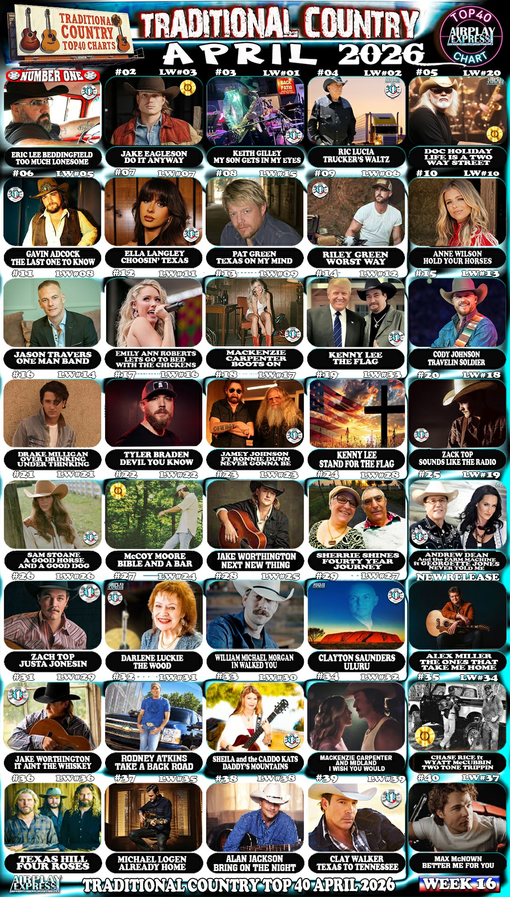 AirplayExpress Top40 Traditional Country Chart Week 16, April 2026