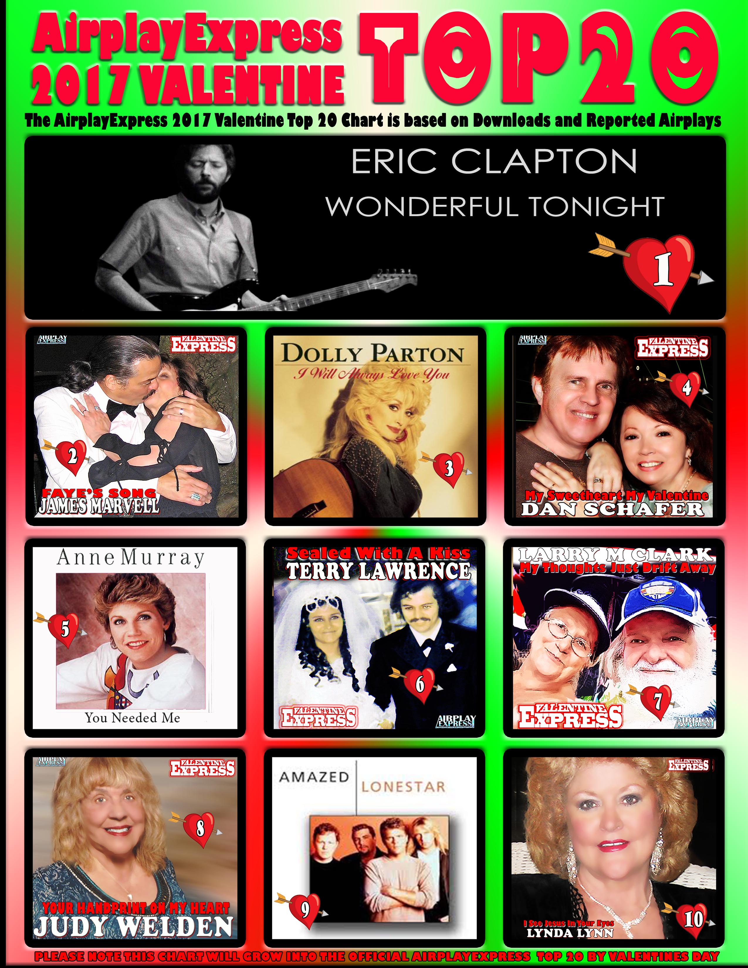 THE OFFICIAL TOP 20 COUNTDOWN TO THE BIGGEST VALENTINE SONGS OF 2022 ON AIRPLAYEXPRESS Chart Number One, Final to be posted February 14, 2022