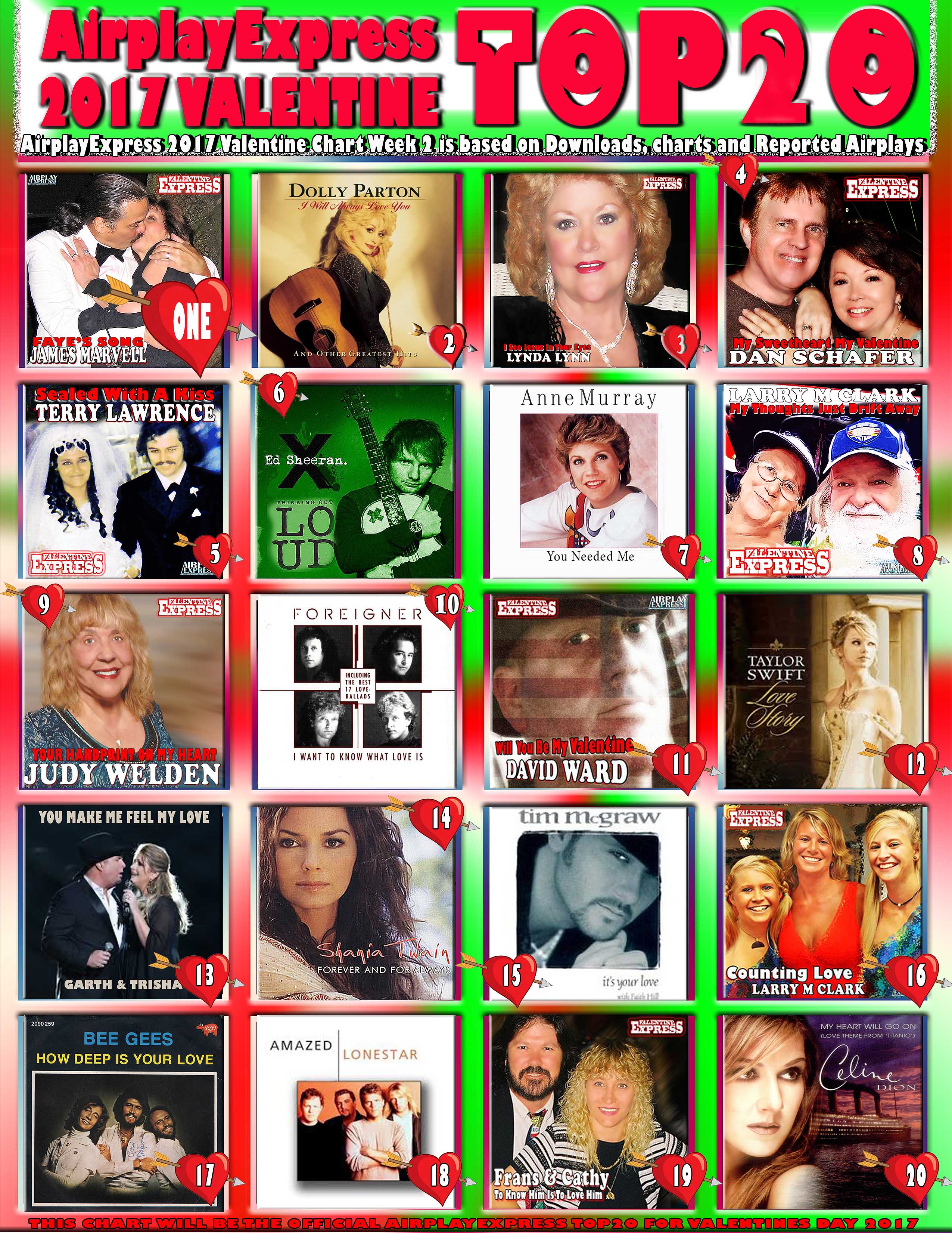THE OFFICIAL TOP 20 COUNTDOWN TO THE BIGGEST VALENTINE SONGS OF 2017 ON AIRPLAYEXPRESS NOW AVAILABLE BELOW – 2 of 3