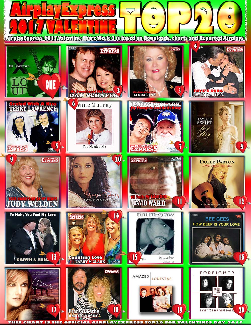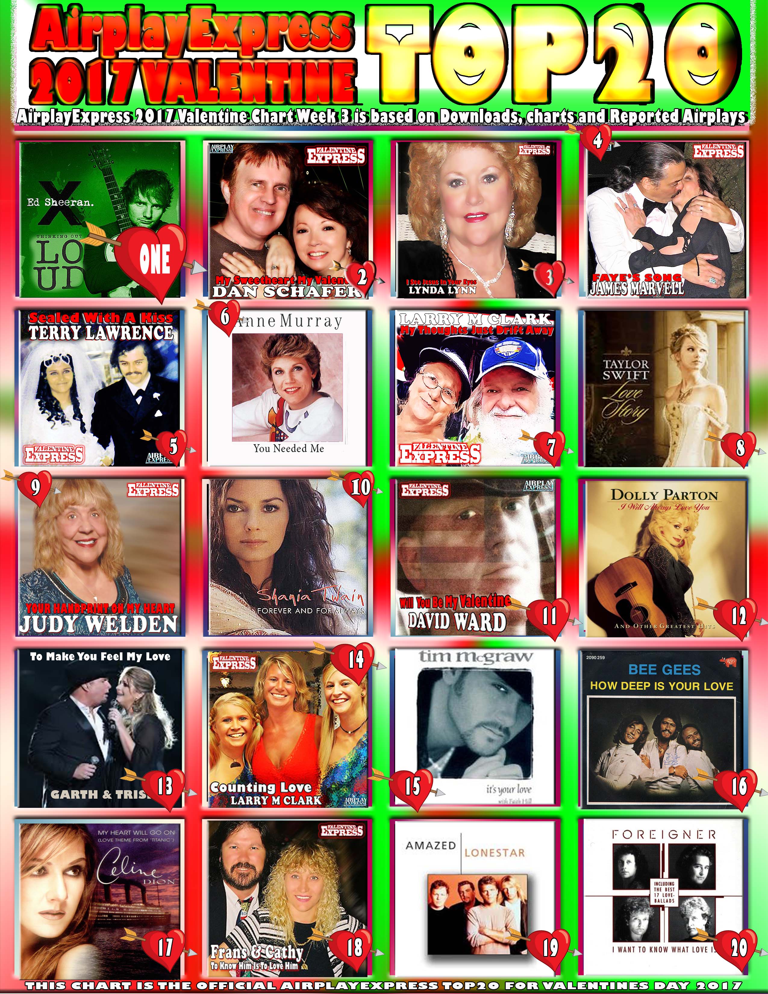 THE OFFICIAL TOP 20 COUNTDOWN TO THE BIGGEST VALENTINE SONGS OF 2017 ON AIRPLAYEXPRESS NOW AVAILABLE BELOW – 3 of 3